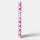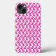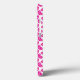 O design parece ser um padrão repetitivo que consiste em um esquema de cor rosa e branca. O padrão apresenta uma matriz de formas abstrato que se assemelham a designs paisley, comumente encontradas em têxteis. Cada forma individual é cor-de-rosa com um contorno branco e contém dentro de elementos decorativos brancos menores. Essas formas são organizadas em uma orientação diagonal, criando linhas que alternam a direção, o que aumenta o interesse visual do padrão. Esse tipo de design é muitas vezes usado em tecidos ou carteiras e é interessante devido a seus detalhes complexos e à forma como as formas se intertravam para formar um design contínuo e fluente.