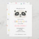 Venha e junte-se ao panda - convite de aniversário de crianças multicoloridas e brilhantes. Design de faixa gráfica, a cor pode ser alterada. Parte de uma coleção.