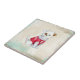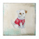 Um cachorrinho doméstico bonito com um doce de Natal vermelho e branco adorável. Um olho marrom e uma orelha marrom neste Azulejo de Foto Cerâmica.