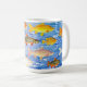 Meus filhos adoram pescar, então eu queria design uma máscara que apelasse a eles. Eu tirei algumas fotos de peixes e as passei por um programa que eu tenho que as transforma em imagens de aquarela. Eu adoro o quão bem me deu a impressão de que as imagens seriam divertidas numa variedade de itens. Para a pessoa que pesca na sua vida, espero que goste deste peixe divertido e colorido!
