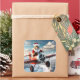 Um adesivo bonito com etiqueta de presente de Natal com um esquilo vestido como Papais noeis voando num avião antigo. O texto pode ser removido ou alterado, mas atualmente diz "Feliz Natal" e inclui um espaço para endereçar o doador e o receptor do presente.