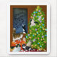 Uma pintura detalhada por Carolyn McFann de uma família dos gatos que jogam em torno e em uma árvore de Natal durante os feriados. Amplie este design para ver todos os muitos detalhes.