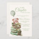 Comemore o início de um belo novo capítulo com este doce e caprichoso convite para o chá de fraldas. Apresentando um ursinho de pelúcia aquosa, sentado sobre uma pilha de livros antigos com um balão, esta design é perfeita para um chá de fraldas com tema de livro. Fontes elegantes e tons verdes silenciados criam um aspecto de eterno ideal para uma celebração neutra em termos de gênero. Personalize com seus detalhes de eventos e dê boas-vindas ao bebê com amor e encanto literário!