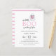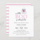 Simples e moderno convite para o chá de fraldas de Halloween com um fantasma bonito segurando uma abóbora bebê em um fundo branco limpo. Com as palavras " um pouco de bu está quase a chegar " e estripar o pastel rosa e branco para trás. Pronto para uma personalização fácil.