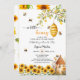 Um tema de Chá de fraldas doce com abelhas, um pente de mel, uma colmeia e girassóis na frente e lindos girassóis nas costas! Você pode personalizar este convite com seus próprios detalhes.