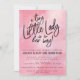 Este Convite A Pequena Senhora Chá de fraldas apresenta design cor-de-água rosa e estilo de fonte moderno para um chá de fraldas moderno.