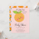 Um pouco de pêssego está no caminho chá de fraldas com um adorável conjunto de laranja clementina em uma rosa claro. Sacudir nosso convite para ver uma coordenação de volta com laranjas definidas em um fundo rosa. Visite nosso compro para ver nossa adorável coleção de designs.