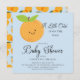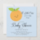 Um pouco de graça está no caminho chá de fraldas com um adorável conjunto de laranja clementina sobre um fundo azul claro. Sacudir nosso convite para ver uma coordenação com as laranjas colocadas sobre um fundo azul. Visite nosso compro para ver nossa adorável coleção de designs.