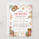 WILD WEST RODEO (PINK CACTUS) - Esta adorável moça de aniversário do sudoeste, Rodeo Cowprint, Cowgirl é totalmente editável, pode ser impressa e enviada por e-mail ou o evento de aniversário pode ser compartilhado por e-mail e pelas mídias sociais! Este Convite de Aniversário da Cowgirl apresenta um par de Cowboy Boots & Cowboy Hat, Lasso, Cactus, um bronco de baloiço e outros trabalho de arte ocidentais cercados por flores cor-de-rosa e estampas de cor creme. Também está incluída uma cópia de segurança opcional. Este Wild West Rodeo, o Convite ao Chá de fraldas está certo de concluir qualquer chá de fraldas do Ocidente, revelação de gênero, ou outro evento temático de vaquinha! Ao usar o software Zazzle fácil de usar (sem download necessário) no seu navegador, você simplesmente compra e personaliza tudo no mesmo lugar. É tão fácil assim!