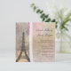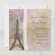 Toque suave e romântico com cores pastéis de creme e rosa com um mapa de Paris impresso ao fundo e sotaque de renda antiga branca. Visual retrô, mas elegante para a noiva de hoje. A Torre Eiffel é perfeita para o casamento francês ou com tema francês. Edite facilmente para o seu convite de casamento. Mostre seus convites com estilo! Nós adoramos pedidos personalizados!