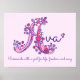 Lindo pôster de arte com monograma A. Um pôster perfeito para o quarto ou sala de brincar de uma menina em tons de branco, rosa e roxo. A cor de fundo é atualmente rosa claro, mas pode ser alterada para a cor que você escolher, se necessário. Personalize com o nome da sua filha começando com A e o significado do nome para um toque verdadeiramente personalizado no quarto ou berçário da sua filha, este exemplo é para o nome A Ava Apaixonada com um gosto pela vida, liberdade e canção. Impressão de pôster fofo ideal para um presente de novo bebê, batizado ou chá de bebê. © Desenho e descrição de arte gráfica de monograma de corações e flores exclusivos por Sarah Trett. www.sarahtrett.com para www.mylittleeden.com