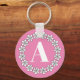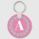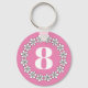 Um presente de chaveiro popular para o 8º aniversário da menina. Design bonito com flores margaridas. Cor rosa ou personalizada. Personalizar com o nome do monograma inicial e número de idade.