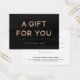 Estes certificados de presente de cor preta de aparência na moda, ricos e texturizados, apresentam elegante ouro falso rosa, tipografia moderna minimalista que diz "Um presente para você". A parte de trás contém bastante espaço para você se personalizar totalmente com suas informações de loja ou de empresa.