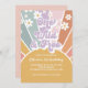 Um convite de primeiro aniversário inspirado em Uma Margarida Retro Selvagem e Livre de Sol e Arco-íris Daisy.
