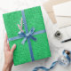 um rolo de papel de embrulho verde com uma superfície texturizada, parcialmente desenrolado para revelar um núcleo branco liso em uma das extremidades, colocado contra um fundo branco simples