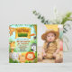 Celebre a aventura na savana para todas as idades. Este convite de savana é uma interpretação moderna da natureza selvagem que amamos. Cada elemento e fundo são desenhados digitalmente para combinar e proporcionar uma aparência de filme animado, com o nome do aniversariante destacado no centro para dar um toque personalizado ao convite