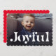 Envie cartões de natal divertidas e alegres com este cartão de Natal de uma foto. Apresentando um tipo lúdico que diz "alegre", ele também tem espaço para uma mensagem personalizada e um dorso em um vermelho festivo manchado com estrelas. Este cartão de férias é excelente para famílias, casais e qualquer um que envie alegria nesta temporada.