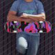 Um skate com um design vibrante nele.