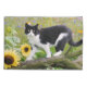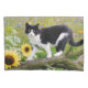 Um gato giro, um padrão de smoking, preto e branco, bicolor europeu Shorthair, andando em um galho de árvore em um jardim com girassóis floridos. Os gatos têm um excepcional sentido de equilíbrio e conseguem um equilíbrio gracioso. Foto de Katho Menden. Este caso de travesseiro é uma ideia de presente para amantes de gatos.