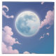 Uma ilustração engraçada e caprichosa de uma grande lua brilhando suavemente em um céu noturno pacífico, cercado por nuvens suaves rosa. Sua atmosfera serena e sonhadora convida você a relaxar e imaginar possibilidades infinitas sob as estrelas.