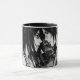 Uma ilustração a preto e branco para uma caneca ao estilo anime de um casal apaixonado por um presente para um adolescente ou amigo de um amante de anime.