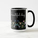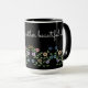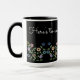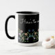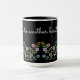 Na moda grande caneca de café com um padrão floral doce, o fundo preto com o padrão pode ser mudado para qualquer cor para ir com a decoração de casa ou de casa. O texto inspiracional pode ser personalizado para qualquer mensagem ou o texto pode ser removível.