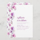 Se você ama estilo simples, este convite é certo para você. O convite apresenta um design elegante, com fundo branco macio e com delicadas flores púrpuras de aquarela à esquerda. No centro, os detalhes do partido são lindamente escritos em texto roxo exuando um ar de sofisticação. Convide convidados para a sua festa de chá de fraldas em estilo. A cor e o texto em segundo plano são editáveis.