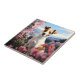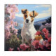 A imagem neste azulejo apresenta um Jack Russell Terrier sentado no meio de uma florescência de florescências cor-de-rosa suaves. Os olhos perspicazes e os ouvidos tocados do cão transmitem uma sensação de alerta e curiosidade, característica de sua raça viva. O primeiro plano é um motim de cor com as delicadas pétalas das flores, contrastando lindamente com o branco suave e casaco bronzeado de Terrier. No fundo, estica-se uma paisagem serena, que oferece um vislumbre de colinas rolantes e um céu azul claro, pontilhado com nuvens brancas e peludas. Esta imagem é uma celebração do esplendor da natureza, com o charmoso Terrier servindo tanto como companheiro e parte vibrante do tableau floral.