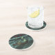 Uma paisagem marinha 3D criada em Vue, mostrando um pequeno navio veleiro com bandeiras vermelhas em um mar com tempestades. Os billows são iluminados com uma luz azul-esverdeada estranha, e as nuvens escuras acima ameaçam mais perigo para o navio.