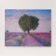 Esta é uma bela fotografia de uma quebra-cabeça já completada de uma adorável árvore e filas de lavanda. As peças de quebra-cabeça não correspondem à imagem—fazer este quebra-cabeça de duro para ser concluído.