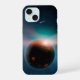 A concepção do artista de uma tempestade de cometas no sistema Eta Corvi, com um possível planeta. Um desses cometas gigantes é mostrado esmagando em um planeta rochoso, jogando poeira rica em gelo e carbono no espaço, enquanto também esmaga água e os orgânicos na superfície do planeta. Um flash vermelho brilhante captura o momento do impacto no planeta. A Eta Corvi amarela-branca é mostrada à esquerda, com ainda mais cometas em direção a ela.