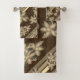 Toalha de banho flórica e estriada com creme, cinza e chocolate marrom. Bela ideia de presente, personalize com um nome. A imagem de impressão florada também é removível para revelar o conjunto de toalhas marrom de chocolate sólido ou alternar para qualquer cor que você escolher.