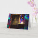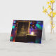 Este belo cartão de saudação de Natal apresenta uma vela acesa em frente a um cartão com uma árvore de Natal brilhante, com luzes de férias coloridas iluminando suavemente o fundo. A luz quente da vela cria uma atmosfera confortável e festiva. Este cartão apresenta uma fotografia de férias clássica e trabalho de arte desenhada à mão pelo Fotógrafo Chefe do Deus abençoe Keg Publishing LLC, Paul John Hausleben.