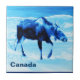 Uma imagem monocromática (azul) de uma anta fêmea que passou pelo meu quintal no Alasca. Também aparece o texto "Canadá". As antas são residentes o ano todo em muitas comunidades do Alasca. Aqui em Anchorage existem cerca de 1500 animais, juntamente com lobos, ursos pardos e outros animais selvagens. Geralmente eles se comportam bem. Muitas vezes cruzam as ruas nas passagens de pedestres depois de esperar pelo sinal de caminhada.