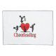 Belo design com um coração 3D rodeado por líderes de torcida em várias poses de torcida.