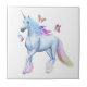 O unicórnio hued do arco-íris cercado por borboletas da harmonização colore o azulejo