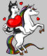 Unicórnio engraçado da equitação do cão do rouco