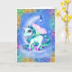 Este cartão de aniversário personalizado para crianças tem um adorável pequeno unicórnio com aqua mane brilhante e coroa correspondente, cascos roxos e olhos, chifre rosa e asas cor-de-rosa. Ela está em uma lua crescente contra um fundo azul com uma pequena lanterna pendurada no topo da lua. Ela também está cercada por estrelas e brilho do arco-íris (impresso apenas). Há também um segundo pequeno unicórnio na dentro do cartão. Para personalizar, basta clicar no link acima, e você pode mudar a saudação de Feliz Aniversário para incluir o nome de uma criança, ou o que quiser. Obrigados para verificar! 🦄