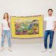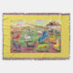Esse belo cobertor de franjas apresenta todos os Unicórnios de Corno Metálico do livro, Unicórnios do Unimaise - A Tribo Mágica de Corno Metálico.