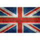 3:5 britânico da escala da bandeira da bandeira de Union Jack com uma textura retro ou suja do vintage. O design atual da bandeira de união data de uma proclamação real que segue a união de Grâ Bretanha e de Ireland em 1801. A bandeira combina aspectos de três bandeiras nacionais mais velhas: a cruz vermelha de St George do reino de Inglaterra, do saltire branco de St Andrew para Scotland (que dois foram unidos na primeira bandeira de união), e do saltire vermelho de St Patrick para representar Ireland.
