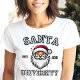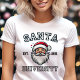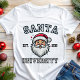 Entre no espírito festivo com esta camisa de Natal estilo universidade "Santa University"! Com um logotipo colegial com Papai Noel e tipografia clássica de universidade, esta camisa traz um toque divertido e acadêmico ao seu guarda-roupa de Natal. O "Fundada em 1836" adiciona um toque divertido, tornando-a perfeita para festas de Natal, passeios casuais ou como um presente excêntrico para estudantes, professores ou qualquer pessoa que ame o Natal! Combine alegria festiva com orgulho universitário neste design único de Natal.