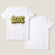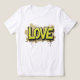 Libere seu espírito de arte de rua com nossa camiseta "Urban Love Bloom". Esta design apresenta a palavra "Amor" ousadamente reproduzida num estilo de grafite dinâmico, trazida à vida com uma paleta única de verde-limão vibrante, castanho-terra e preto clássico. É uma afirmação crua, mas refinada, que mistura a borda urbana com um sentimento natural e florescente. Perfeito para aqueles que carregar amor em cada passo da sua cidade.