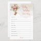 Embarque em uma jornada empolgante com a aquarela rosa, marrom e o ursinho de marfim Caro Bebê quer cartão de jogo projetado para um chá de fraldas feminino com o tema "Nós podemos esperar mais cedo". Este cartão branco e aventureiro convida os hóspedes a partilharem os seus sentidos desejos pelo novo bebê, misturando cores suaves com um toque de charme lúdico. À medida que você comemora a chegada iminente, que os desejos dos convidados pelo pequeno marquem o tom para um evento mágico e inesquecível, cheio de alegria e antecipação para a emocionante aventura que se avizinha. Contacte-me para obter itens correspondentes ou para personalização, Rosas embebidos ©