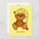 Este Cartão de Aniversário bonito apresenta um ursinho de pelúcia bonito com boné para dormir desenhado à mão e editado digitalmente. O urso é marrom, o boné-cama é amarelo com estrelas pequenas. Um Cartão de Aniversário super fofo para qualquer um! Custom Text.
