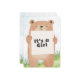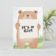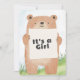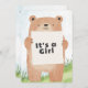 Celebre em estilo com este adorável convite de chá de fraldas com uma ilustração de urso bonitinho segurando um cartaz que diz "É uma Rapariga." O verso inclui todos os detalhes do evento com um fundo verde e azul macio e um título com tema de urso lúdico. Perfeito para florestas ou chás de fraldas de animais!