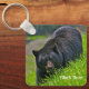 A chaveiro é mostrada com uma impressão fotográfica de um urso negro selvagem em Yellowstone. Personalize este item ou comprar como está. Imagem do stock