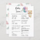 "Não podemos esperar". Celebrar com esta festa de chá de fraldas do ursinho de pelúcia! Urso de pelúcia bonitinho de aquarela com balões coloridos. Fundo com céu azul-rosa-aquarela. Itens correspondentes disponíveis. CHAVE DE RESPOSTA: 1.d 2.d. 3.a 4.c 5.c. 6.a. 7.b 8.c.