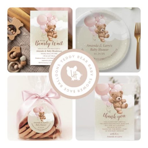Blush Pink Balloon Teddy Bear Baby ShowerCriado por Amanda Cudnik
