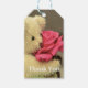 Um doce urso de pelúcia segurando um rosa nesta etiqueta de favor personalizada. Personalize o texto na frente ou atrás com sua própria mensagem substituindo o texto de exemplo mostrado no modelo de design.