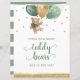 Urso De Urso De Água Com Urso Verde E Balões Dourados Quantos Ursos De Teddy Estão No Sinal De Chá de fraldas De Carro. Design apresenta um esquema de texto elegante e moderno. Para fazer alterações avançadas, selecione a opção "Clique para personalizar mais".